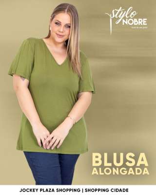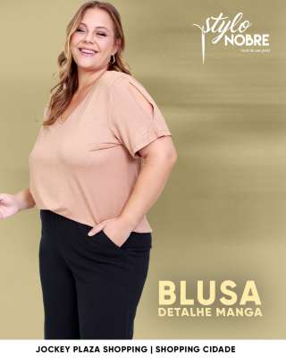 Camisete Feminina Plus Manga Longa com Bolsinhos e Recortes