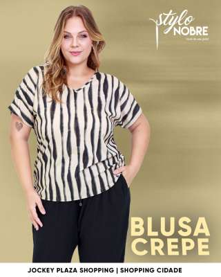 Blusa Malha Crepe Estampada Manga 7/8 Plus Size