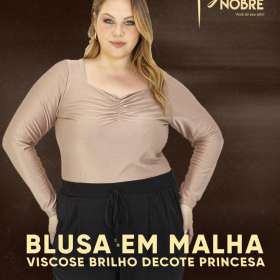 blusa em malha viscose brilho decote princesa
